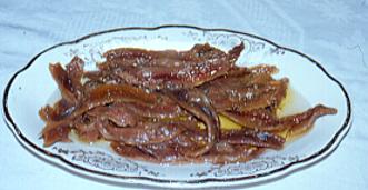 Mio suocero prende un vaso di latta (o plastica) cilindrico, mette le alici pulite delle testa e le interiora, in uno strato poi mette del sale grosso, poi un'altro strato pereendicolare la primo, e altro sale e così via fino a riempire il vaso, mette poi un coperchio di legno del diametro leggermente inferiore a quello del vaso, poi sopra ci mette un mattone come peso.Il vaso così riempito viene messo dentro un sottovaso (tipo qello delle piante) più largo e dai bordi alti almeno 4 5 com. Man mano che passa il tempo di forma dell'acqua che in un primo momento tenderà a fuoriuscire dal vaso e che si provvederà a vuotare.Man mano che passa il tempo il pesce sotto sale tenderà ad abbassarsi perchè si appiattisce.Dopo circa un paio di mesi il pesce può essere tolto dal suddetto vaso e pesce per pesce va pulito con un salvietta e deliscato, quindi si mette nell'olio di oliva. Se consumato in breve tempo si può aggiungere anche un po' di cipolla tagliata a fettine sottili, altrimenti si lascia il pesce semplicemente sott'olio aggiungendo eventualmente la cipolla al momento del consumo. Queste alici sono ottime servite con crostini caldi imburrati |