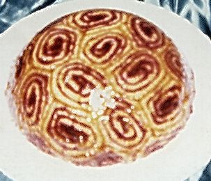 Si può montare anche in un'altro modo, e viene una cosa molto carina: Si fa un rotolo di pasta biscotto spalmato all'interno con un velo di fragole frullate con lo zucchero e scaldate un pò sul fuoco, giusto per fare addensare un pò il frullato. Deve essere un velo sottilissimo, giusto per colorare la pasta. Si arrotola bello stretto, si avvolge nella pellicola e si tirne in frigo per qualche ora. Poi si taglia a fettine sottili, diciamo non più di un cm. Con queste spiralette si riveste una ciotola bombata, mettendole belle strette,non ci deve essere molto spazio tra l'una e l'altra. Si bagnano con uno sciroppo di acqua, zucchero e buccia d'arancia e ci si versa dentro la bavarese. Altra sosta in frigo di almeno tre ore. Si capovolge e, se la bavarese è venuta bene, non si spatafascia sul piatto. A questo punti si spennella tutta la cupola con gelatina di albicocche o in mancanza, con marmellata di albicocche frullata e scaldata sul fuoco, strando bene attenti a riempire tutti i vuoti tra una spiraletta e l'altra. L'effetto è strepitoso, dovrei avere una foto, se la trovo la pubblico. marialetizia