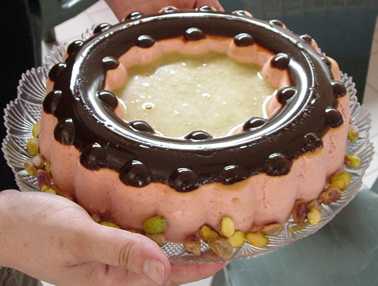 per la salsa ai pistacchi: 150 gr latte, 80 gr zucchero, 1 tuorlo, 200 gr pistacchi sgusciati, 1 cucchiaio di Cognac.