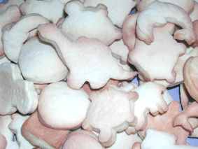500 gr di farina 50 gr di fecola 100 gr di burro 100 gr di margarina 3 uova 150 gr di zucchero a velo 1 bustina di lievito 5 cucchiai di panna 1 bustina di zucchero vanigliato spero di non aver dimenticato nulla.... Impastare il tutto ricavare i biscotti con le formine e infornare. Io li metto a 170 gradi per 15/20 minuti.