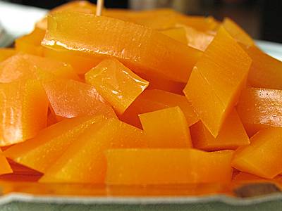 Fate ammorbidire i fogli di gelatina in acqua fredda per 5 minuti in una ciotola. Mettere il succo dell’arancia, la scorza del limone e la pectina in una casseruola e portate a bollore. Aggiungete burro e zucchero e fate bollire per 5 minuti. Spegnete, incorporatevi i fogli di gelatina strizzata e mescolate per scioglierla. Versate il composto ottenuto in uno stampo rettangolare con bordi da 1,5 cm e lasciatelo raffreddare, poi trasferitelo in frigo e fatelo riposare per almeno 6 ore. Ritagliare in forme a piacere.