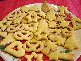 Setacciare le farine con il lievito. Fare a pezzetti il burro e sfregarlo con la farina, procedendo come per la frolla. Fare la fontana e aggiungere gli altri ingredienti, lavorando il meno possibile e velocemente. Fare una palla, avvolgere nella pellicola e far riposare in frigo per un'ora. Stendere e tagliare a piacere (io ho usato gli stampini natalizi). Infornare a 180° per 15 minuti circa.