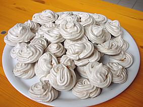 In una terrina bella grossa (possibilmente strofinata bene con un pannetto imbevuto di aceto poi sciaquata e lasciata in frigo mezz'ora) mettete gli albumi freddi di frigo facendo attenzione che non ci sia proprio nemmeno la minima traccia di tuorlo. Aggiungete lo zucchero semolato e iniziate a montare con la frusta elettrica. Quando gli albumi sono parzialmente montati aggiungete lo zucchero a velo e il cacao, e continuate a montare fino ad ottenere un composto lucido e molto sodo. Coprite uno stampo con della carta da forno e usando una tasca da pasticciere formate le meringhe, poi infornate a 100° per 2/3 ore (a seconda delle dimensioni), lasciando lo sportello del forno socchiuso, perchè non devono cuocere ma asciugarsi. Molto probabilmente quando le sfornerete saranno un pochino "appiccicose", ma poi si seccano del tutto raffreddandosi.