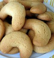 g. 125 burro a pezzetti g. 260 farina g. 50 zucchero semolato g. 50 zucchero di canna g. 50 nocciole tostate tritate un uovo un cucchiaino di essenza di vaniglia 30 ml. di panna fresca un cucchiaino raso di lievito mezzo cucchiaino di cannella macinata zucchero a velo per decorare Lavorare burro, vaniglia, zucchero bianco e di canna, e uovo fino a quandop sarą bello soffice. Aggiungerci panna, nocciole, farina e cannella. Mettere il composto su una superficie infarinata e lavorare fino a quando sarą ben liscio. Chiudere in un sacchetto di plastica e mettere in frigo per mezz'ora. Prendete un po' di composto (grande tipo una noce grande) e date una forma a mezzaluna. Mettete su una teglia e infornate in forno gią caldo a 180°C per circa 15 minuti, o fino a quando saranno marroncini. Togliete dal forno e fate freddare su una griglia. Spolverate con abbondante zucchero a velo. Sono pił buoni dopo un paio di giorni e si mantengono anche per un mese.