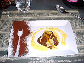 250 gr. di cioccolata amara fondente 150 gr. di zucchero (preferisco usare quello a velo oppure appena passato nel mixer o nel macinacaffe') 150 gr di burro 9 rossi d'uovo 7 chiare montate a neve fermissima. Metto dentro una terrina i rossi d' uovo e lo zucchero facendo montare per benino con una frusta (potete anche usare lo sbattitore elettrico cosi' incorporate piu' aria), intanto sciolgo la cioccolata e il burro andando nel bagno della mia vicina di casa di nome Maria (oppure uso il microonde). In realta' la cosa dovrebbe essere fatta separatamente per cioccolato e burro , temperando anche la cioccolata, ma in caso di necessita' se ne puo' fare anche a meno. Quindi mescolo per bene anche cioccolato e burro nella terrina con rossi d' uovo e zucchero , al fine unisco delicatamente ma con fermezza le chiare montate a neve ferma e il gioco e' fatto, pongo la mousse in delle ciotoline e schiaffo il tutto in frigo (per almeno quattro ore). Inoltre dividendo le dosi per tre (almeno dove possibile senza il bilancino di precisione) puoi usare tre diversi tipi di cioccolato ( nero fondente, bianco e al latte o gianduia, quindi far addensare un primo strato in una terrina di forma rettangolare , poi aggiungere il secondo colore e di nuovo in frigo, dopo che anche il secondo strato si e' rassodato voila' aggiungere l'ultimo colore. Per il servizio prepari una crema inglese con dentro delle foglie fresche di Menta passate al mixer (io uso quella romana perche' ce l'ho nel giardino), fai una specchio con questa crema sul piattino di servizio e sopra metti una trancia di mousse ai tre colori, magari infilando nella mousse un rametto di menta fresca per guarnizione
