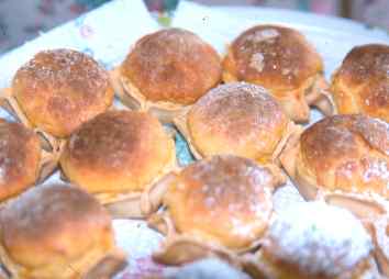 1kg di ricotta,2 tuorli,200 gr di farina,200 gr di zucchero,2 bustine di zafferano,la buccia di 1 arancio grattugiato,la buccia di 1 limone grattugiato,1 bustina di vanellina. Procedimento:schiacciare bene la ricotta con la forchetta o con le mani,non usare assolutamente in frullatore,agiungere tutti gli ingredienti,mescolare bene,fare delle palline di circa 4 cm di diametro.Per la pasta :500 gr di farina 50 gr di zucchero,50 gr di strutto,mezza bustina di vanellina,acqua .Procedimento: Sulla spianatoia , mettere la farina aggiungere tutti gli ingredienti e impastare con l'acqua,l'impasto non deve essere molto duro tirare un sfoglia sottile ,aiutandovi con la macchinetta,tagliare dei dischi di circa 8 -10 cm di diametro,poggiare una pallina di ricotta chiudere la pasta a pizzichi ,mettere in forno a 180 x circa 40 min,dipende dal forno,quando sono fredde spolverizzare con lo zucchero a velo,buon lavoro un bacio