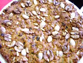 Ingredienti (sufficienti per una teglia di medie dimensioni): 300 gr. di farina bianca tipo 0 (in mancanza anche la 00 va bene); 500 cc. di latte a temperatura ambiente; 3 uova intere (a temperatura ambiente); 50 gr. di lardo tritato; 2 lucaniche trentine, abbastanza grandi, fresche spellate (preferibilmente quelle della Val Rendena); un pizzico di sale ed uno di pepe macinato all'istante. Procedimento: Scaldare il forno (funzione statica, non ventilata) a 230 - 240°, affettare una lucanica (tenendo da parte le fette per la guarnizione), sminuzzare e sbriciolare l'altra, rosolandola dolcemente, eliminando il grasso che si sarà formato, tritare il lardo. Si rosoli quest'ultimo, conservando il grasso, passato attraverso il colino, gettando infine il lardo. In una zuppiera si sbattono bene le uova, aggiungendo un pizzico di sale ed il pepe, si versa lentamente il latte, amalgamando con la frusta, infine si incorpora la farina, setacciata, lentamente, sino a quando si sia formata una pastella abbastanza fluida (piuttosto liquida). Si aggiunge il grasso del lardo ed i pezzetti sbriciolati della lucanica, raffreddati, mescolando bene. Si unge la teglia con dell'olio e.v. d'oliva, mettendola a scaldare sui fuochi, quando l'olio si sarà scaldato, si versa il liquido, rimestandolo bene, al fine di distribuire uniformemente i pezzetti di lucanica, si guarnisce adagiando le fettine di lucanica sull'impasto, facendole appena affondare sotto la superficie. Si inforna per circa 30' (il tempo dipende dal tipo di forno), comunque osservare che la superficie assuma un bel colore dorato ed un aspetto croccante, e il profumo non abbia tonalità di "crudo".