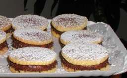 Prendete la crema al cioccolato e unitevi la panna montata finchč diventa spumosa come una mousse.Regolatevi nella quantitą' come meglio vi aggrada. A questo punto prendete metą delle ciambelle e capovolgetele. Con la sac ą poche sprizzate un ciuffone di mousse al cioccolato e adagiatevi sopra un'altra ciambella.Calcate leggermente in modo che la mousse diventi uniforme. Rotolate i lati del dolce sopra uno strato di codette di cioccolato e quindi spolverizzate la superficie con lo zucchero al velo.