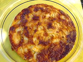Ingredienti: 1 kg mele renette sbucciate, 150 gr farina, 100 gr. zucchero semolato per la torta più quello per spolverare. 1 uovo intero, mezzo bicchierino di rhum, 1 bustina di lievito, un pizzico di cannella, poco latte, burro e farina per la teglia. Si prepara l'impasto sbattendo l'uovo intero con i 100 gr di zucchero, si incorpora la farina aiutandosi con il latte se diventa troppo duro, il mezzo bicchierino di rhum, la cannella, il lievito e da ultime le mele a fettine. L'impasto deve essere una pastella semiliquida e praticamente sono mele bagnate di pastella. Si versa il tutto nella tortiera e si cosparge abbondantemente di zucchero semolato. In forno a 180° per 40/45 minuti. Lo zucchero dve fare la sua brava crosticina un po' bianca. E' una torta che mi risolve un sacco, è veloce da preparare e si possono usare le mele che si hanno in casa al momento di necessità, al posto delle renette ed è sempre graditissima.