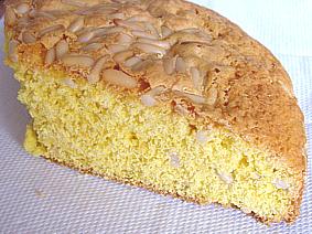 Io ho una ricetta, quella che faccio sempre, proveniente da una compagna di scuola, che prevede solo l'uso delle mandorle (100 g). Una parte di esse va tagliata grossolanamente ed unita all'impasto, mentre le restanti si separano nelle due metà con un coltellino appuntito e si usano per coprire in cerchi concentrici la torta.