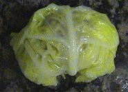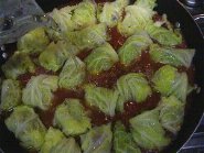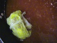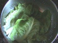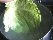 In acqua bollente salata, sbollento le foglie di cavolo-verza.