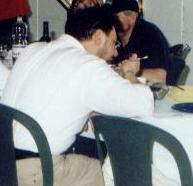 Ma anche i fotografi si rilassano e non si lasciano scappare quanto ci sia di commestibile. Ecco l'ing. alle prese con un bel piatto di pasta.