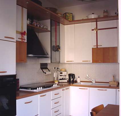 Ho quindi preso dei nastri natalizi (per colore o per materiale) e li ho tagliati "incartando" gli sportelli di cucina.