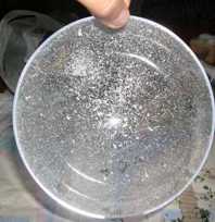 Si spruzza con la neve spray una delle due metà della palla.