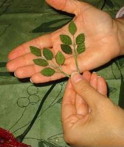 ora prendete una striscia di carta adesiva lunga tanto da ricoprire tutto il gambo e delle foglioline come queste.