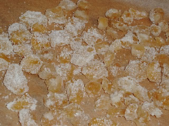 Ho prelevato singolarmente le fettine di zenzero e le ho ricoperte di zucchero semolato.