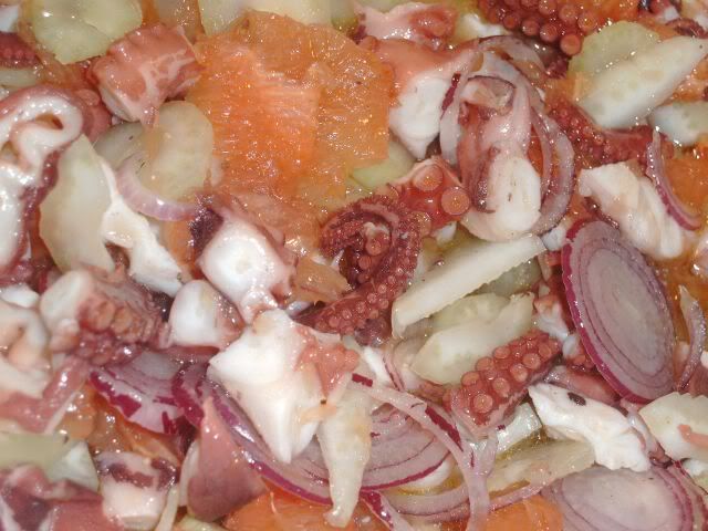 Polpo con sedano,pompelmo rosa e cipolla di Tropea