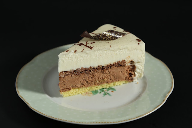 Il riso in tutte o quasi le sue declinazioni: in chicco, sotto forma di farina e di amido, soffiato e nella sua forma liquida come latte. Tre consistenze: la soffice del biscotto di base, quella cremosa dell'inserto al cioccolato e caramello e quella altrettanto vellutata della crema-mousse al riso e cioccolato bianco; quella croccante del croccantino al riso soffiato e cioccolato.