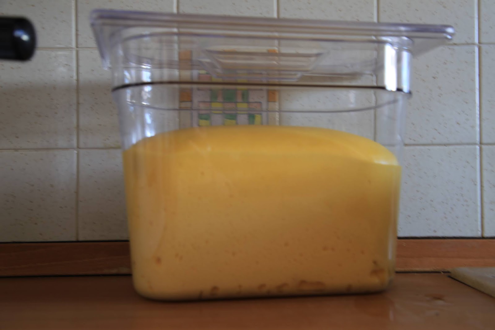 Trasferire in un contenitore graduato (consente di controllare meglio la lievitazione) e lasciare lievitare a temperatura ambiente fino a quando non sarà raddoppiato di volume.