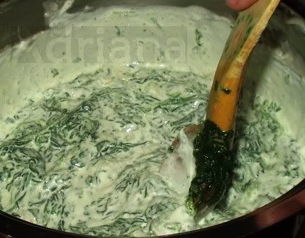 questa foto l'ho fatto all'inizio, in realtà la besciamella è molto poca rispetto alla quantità di spinaci, lascia evaporare un po' mescolando sempre e sono pronti,