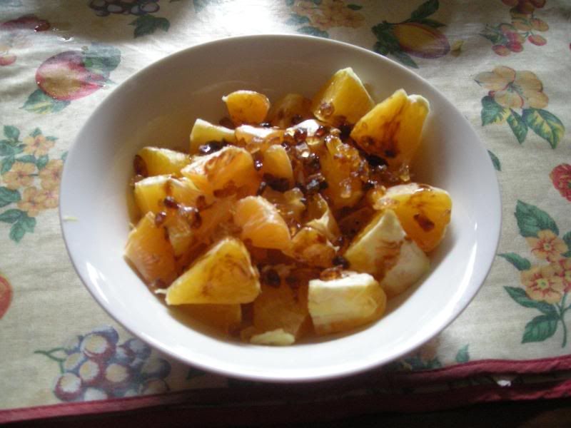 Pezzetti di mandarini e arance con cristalli di zucchero grezzo alla cannella ed aceto balsamico tradizionale di Modena