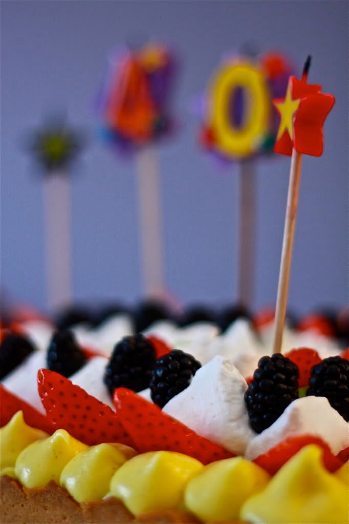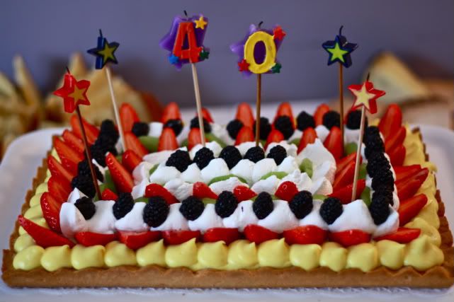 soprassiedo perche' il festeggiato sembra aver gradito.Veniamo al punto, Lui( il festeggiato) ama una torta di una nota pasticceria di roma, io guardo la foto e vedo che e' una torta di frutta con crema panna e confettura di mirtilli spalmata sulla base.