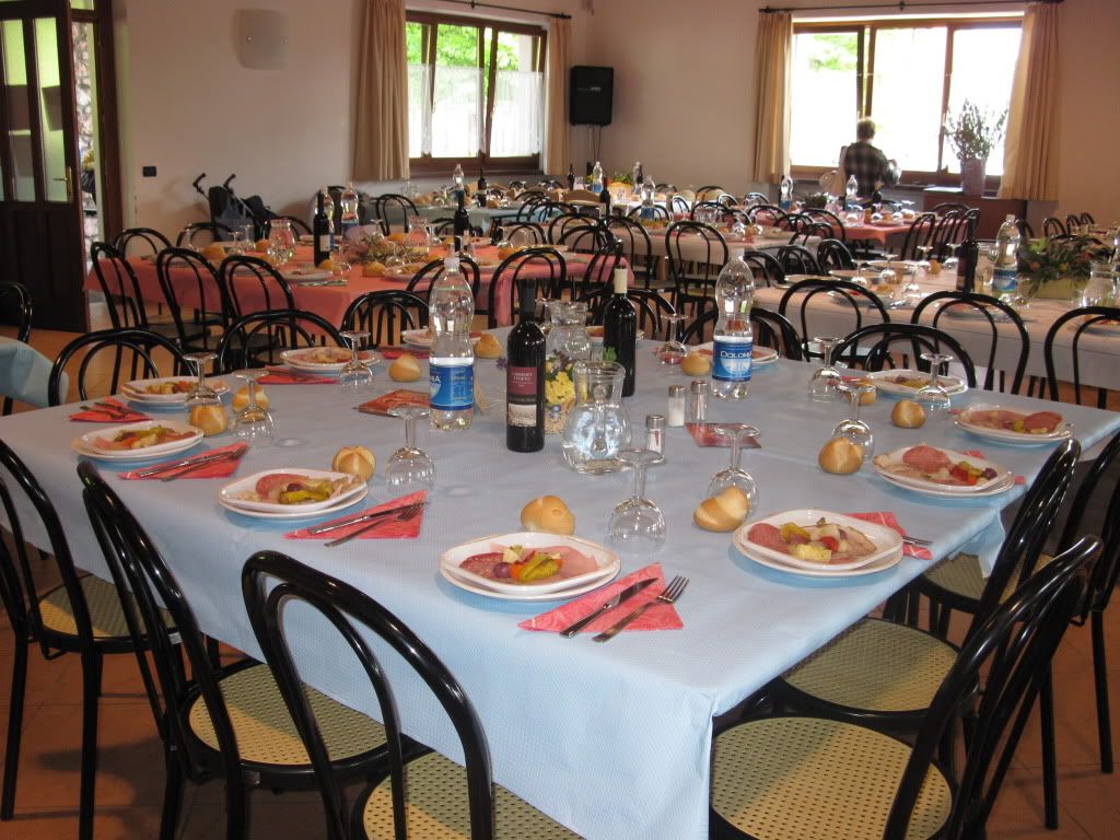 La sala già pronta con gli antipasti in tavola