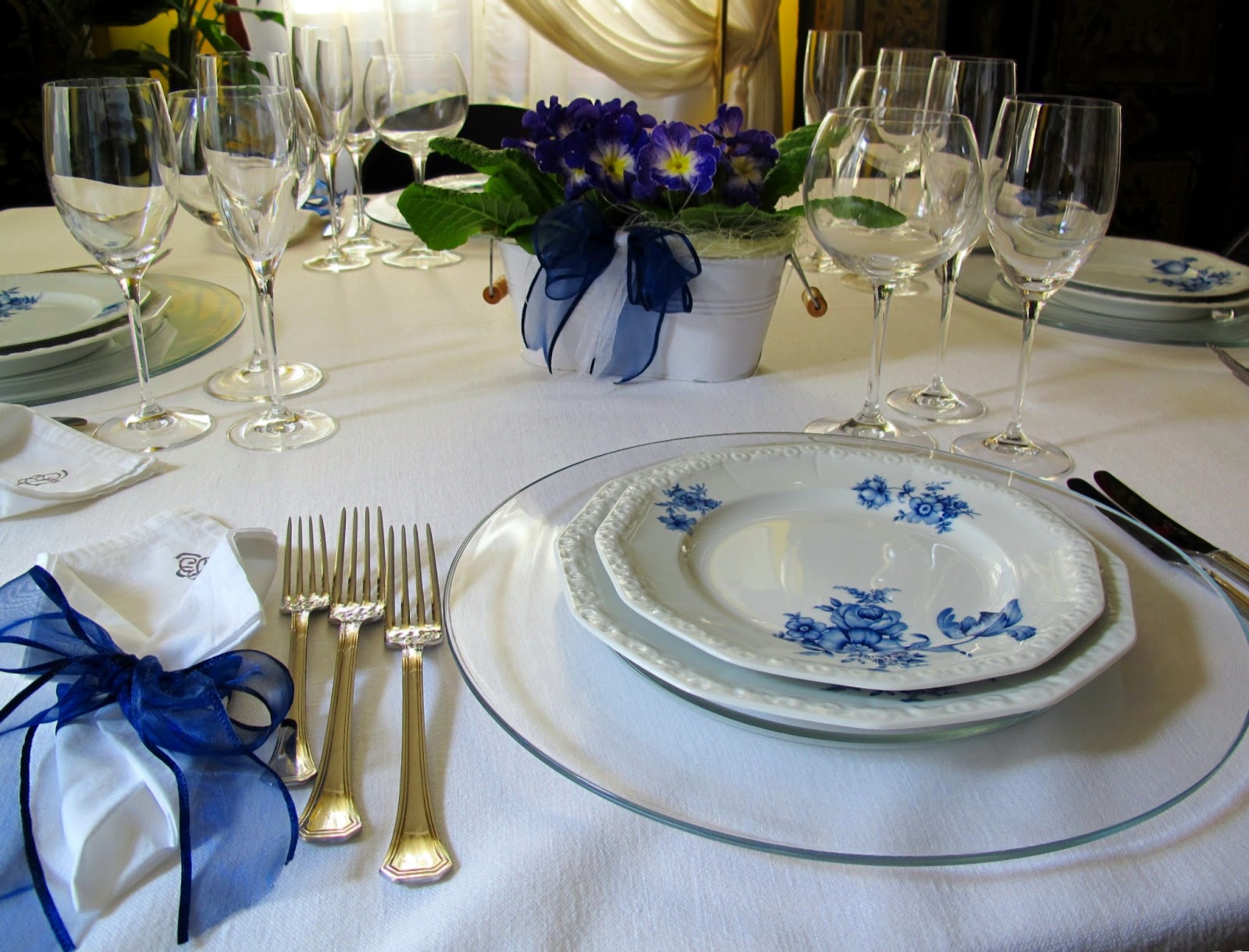 Ho pensato di metterli in tavola, solo blu, mi andava il monocolore e mi andava di rispolverare un vecchio servizio di piatti Rosenthal che ho usato pochissime volte.