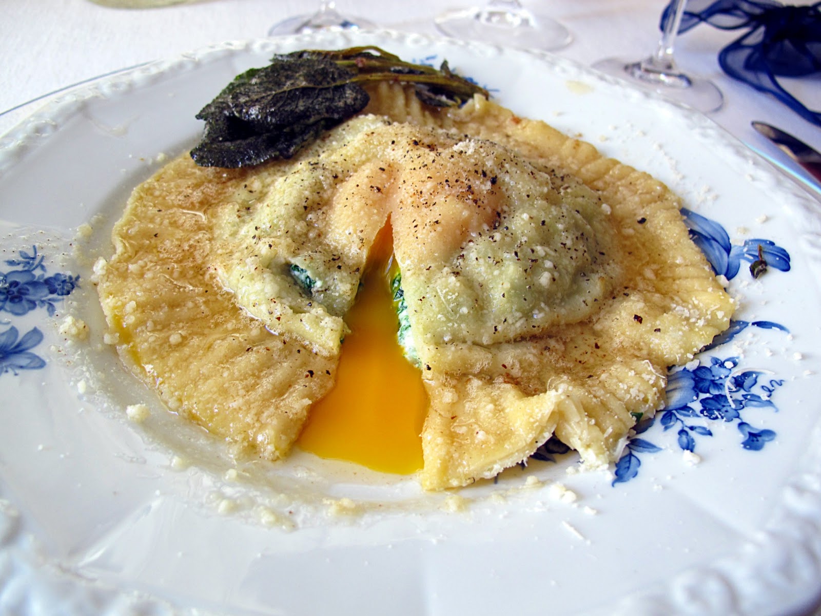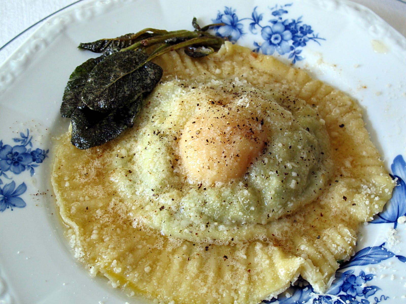 Raviolone al tuorlo fondente con ricotta e spinaci