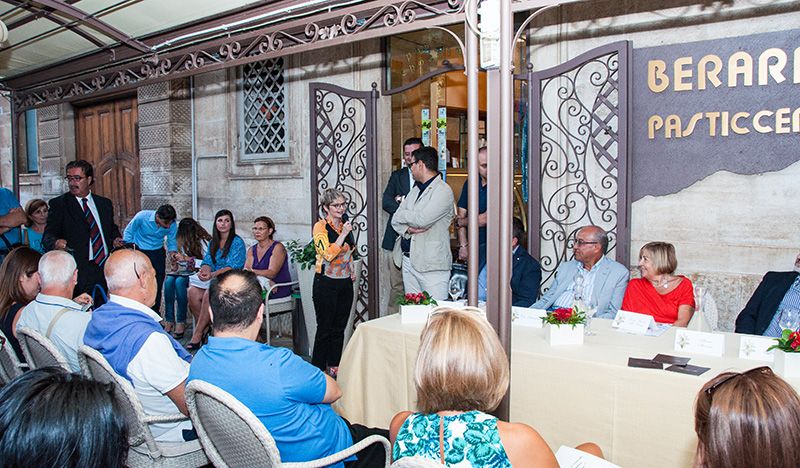 Il primo giorno siamo stati accolti da una Ruvo eccezionale, e il bar Berardi ci ha accolti per la conferenza stampa di apertura del galà della ristorazione. Appena arrivata, la prim botta di commozione: tra i giornalisti ce n'era una che conoscevo bene, sia perché avevamo fatto alcune cose insieme sia perché... è la zia della nostra Maffo. Non vi sto a dire i lucciconi da entrambe le parti.