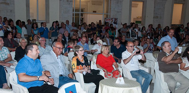 Qui ero in platea: da sinistra l'assessore-guida turistica, il sindaco di Ruvo, io, Anna Moroni, un giornalista e uno chef.