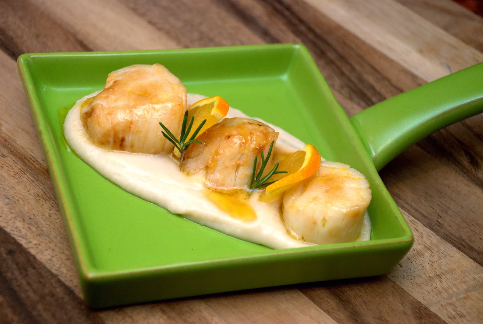 Capesante all'arancia e crema di cannellini